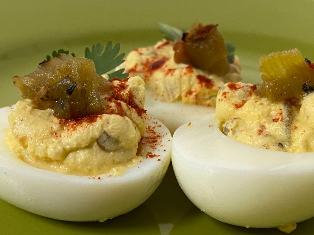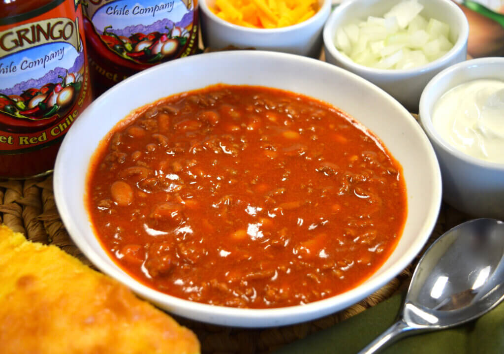 READ MORE Red Chile Beans February 11, 2022 Recipes Serves 4-6 Ingredients: 1 lb lean ground beef 1 Tbsp ground cumin (or less depending on your taste)... READ MORE Green Chile Macaroni & Cheese February 2, 2022 Recipes Serves 6-8 Ingredients: 1 lb pasta of your choice 8 Tbsp (1 stick) unsalted butter ½ cup flour ... READ MORE Steak & Eggs Benedict With Red Chile Lime Hollandaise August 15, 2020 Recipes Ingredients: 3 Egg Yolks or 2 Whole Eggs for the Sauce (The sauce can be rich) 2 Whole eggs for Poaching 1 NY... READ MORE New Mexico Style Tater Tot Casserole April 15, 2020 Recipes Ingredients: 32 ounce package frozen tater tots 1 lb. lean ground beef ½ white onion, diced 1 jar Ol’ Grin... READ MORE Red Chile Wontons January 31, 2020 Recipes Makes approximately 24. Ingredients: 1 8-oz package of cream cheese (room temperature) ½ cup Ol’ Gr... READ MORE Green Chile Squash Casserole January 23, 2020 Recipes Ingredients: 6 to 8 zucchini and/or yellow squash, diced (approximately 8 cups) 1/2 of a medium onion, diced ... READ MORE Creamy Green Chile Chicken Enchiladas January 22, 2020 Recipes Ingredients: 1 jar Ol’ Gringo Gourmet Green Chile Sauce 1 cup milk 1 10.5-ounce can cream of chicken soup ... READ MORE Green Chile Deviled Eggs January 22, 2020 Recipes Ingredients: 6 hard-cooked eggs, peeled and cut lengthwise ¼ cup Mayonnaise ½ tsp dry mustard ½ tsp white... READ MORE Red Chile Bacon Cheese Ball January 22, 2020 Recipes Ingredients: 1/2 cup Ol’ Gringo Red Chile Sauce 8 ounces cream cheese, softened 1 cup shredded cheddar cheese...